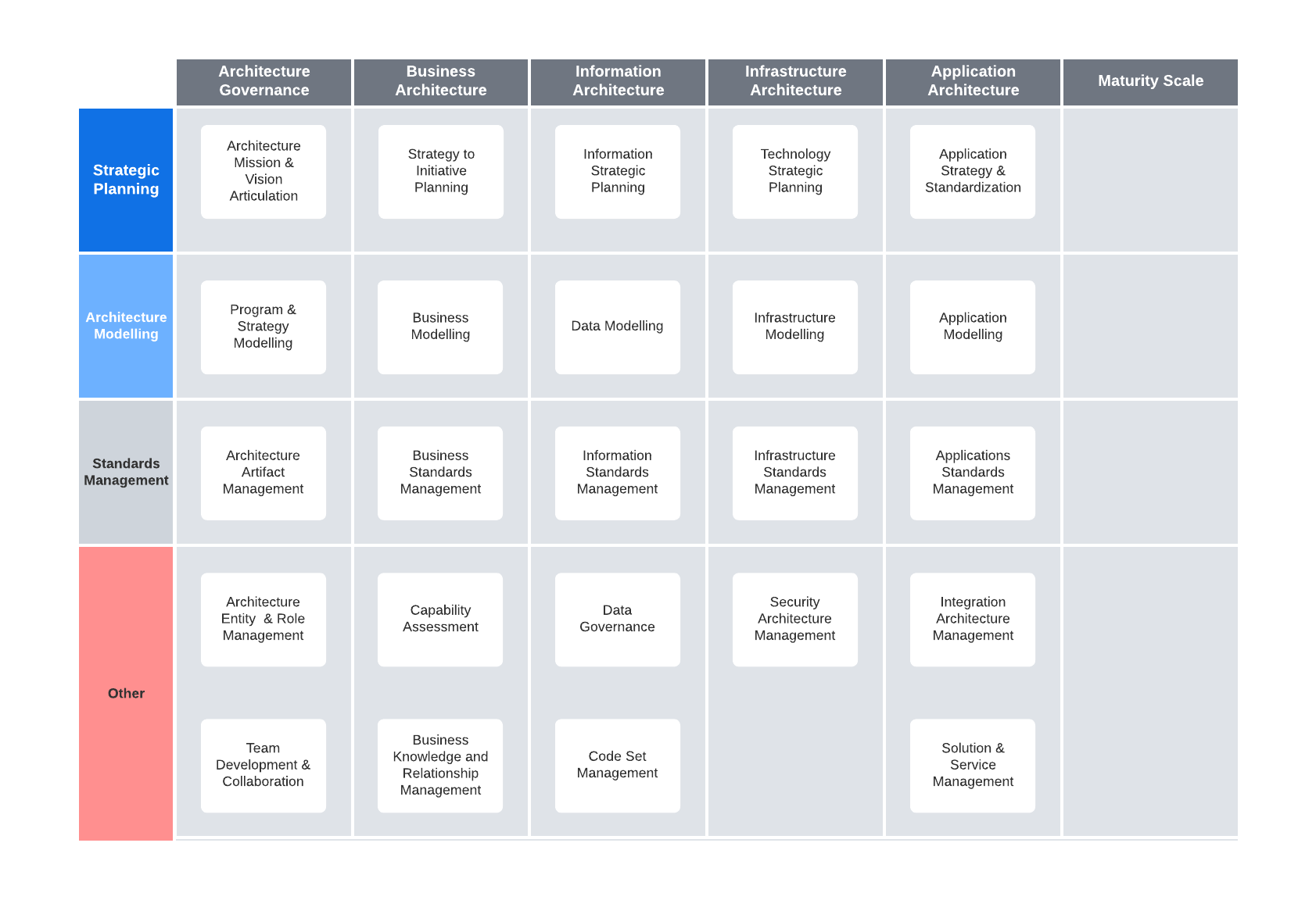 In my experience, establishing such maturity involves developing frameworks like the matrix I created to assess and advance EA within a previous organization. Given a clean slate and leveraging my TOGAF certification, I initiated this process with a thorough current state analysis before planning the required digital transformations and future roadmaps. While TOGAF standards guided my approach, I recognize the flexibility to adapt similar matrices to different organizational models and requirements.